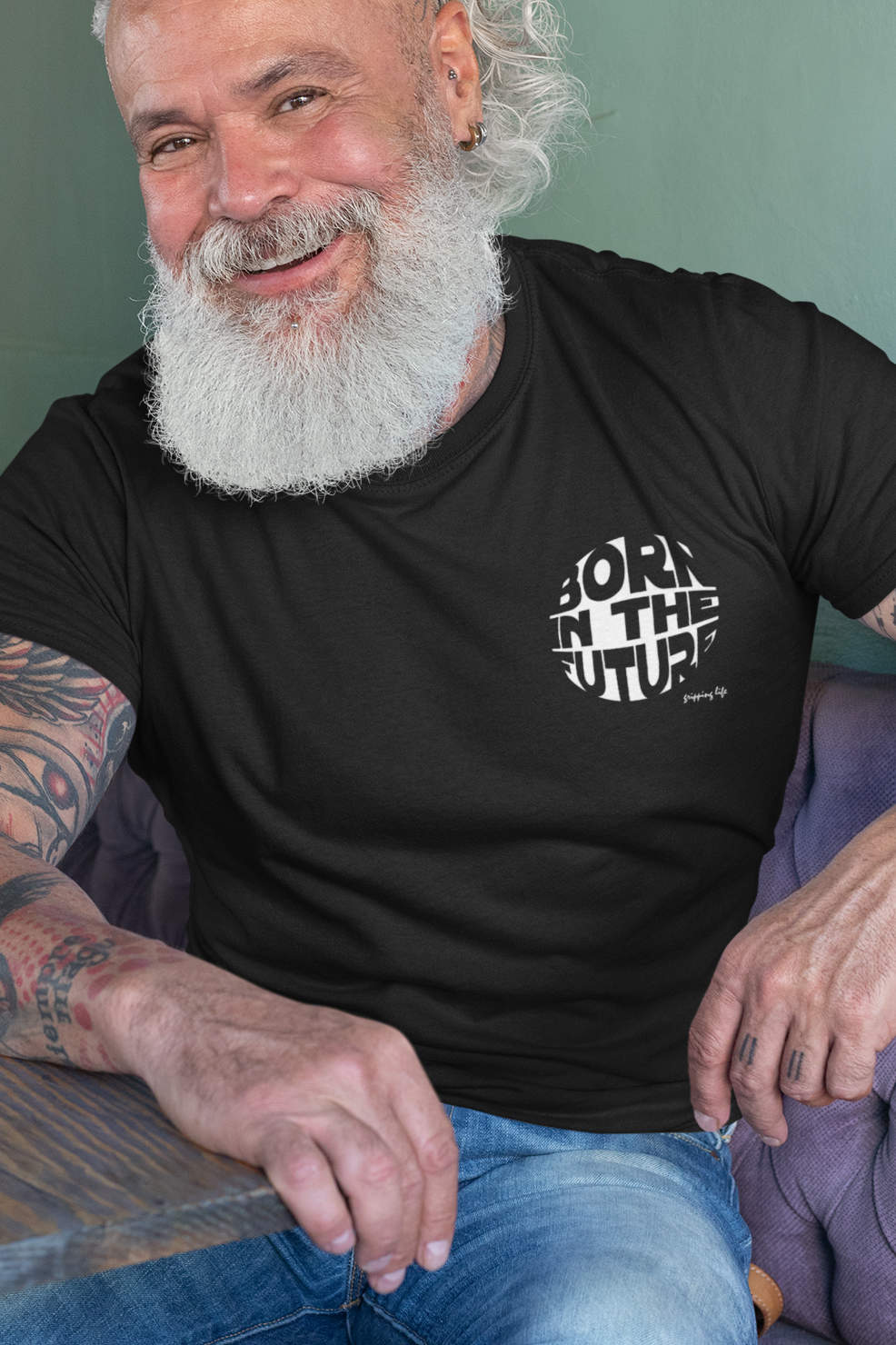 For those who are ahead of time, we present the ultimate statement piece – our ‘Born in the Future’ round chest design t-shirt! This captivating design combines sleek style with a touch of sci-fi nostalgia, making it the perfect statement piece for you. The tee is made with high-quality materials and has a comfortable fit. Show off your unique style and embrace your inner futurist with this out-of-this-world, future-themed t-shirt. Order yours today and let everyone know that you were born to rock the future!