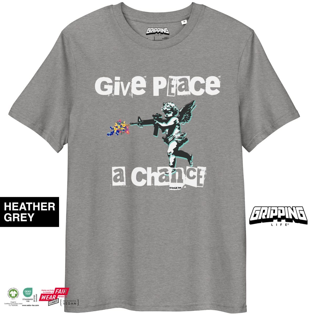 Remember that one time Lennon and Yoko started a peace movement from a hotel bed? This shirt’s basically that—but with better typography and fewer paparazzi. The slogan “Give Peace A Chance” is scrawled in bold graffiti-style letters, as if Banksy took a break from stenciling rats to shout “NO WAR!” in full color.